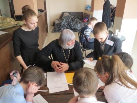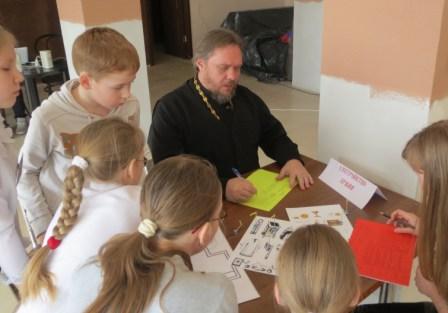 Участники «Большой контрольной» показывали свою осведомленность о церковных праздниках, агиографии и постах, объясняли устройство храма и последовательность литургии, а также всё, что знали о 10 заповедях Закона Божия. С легкостью был пройден и творческий конкурс – без слов, через мимику и жесты объяснить предмет, явление из церковного обихода и духовной жизни человека. Несмотря на волнение, команды с честью выдержали все испытания. По итогам игры все учащиеся были признаны сдавшими экзамен и переведены в следующий учебный год. Завершилась "Большая контрольная" благодарственной молитвой ко Господу, а в заключительном слове настоятель храма протоиерей Даниил Тихонов поздравил всех с окончанием учебного года.