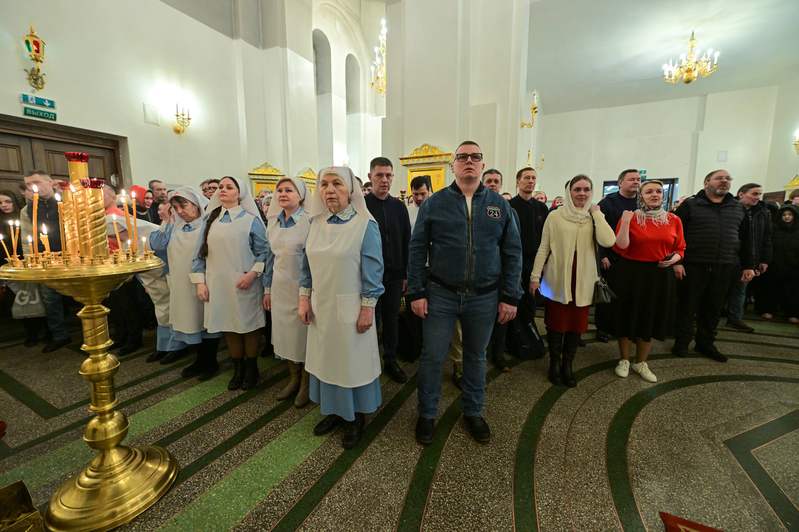 На богослужении присутствовали заместитель председателя Законодательного собрания Красноярского края Д.В. Свиридов и Глава города Норильска Д.В. Карасев.