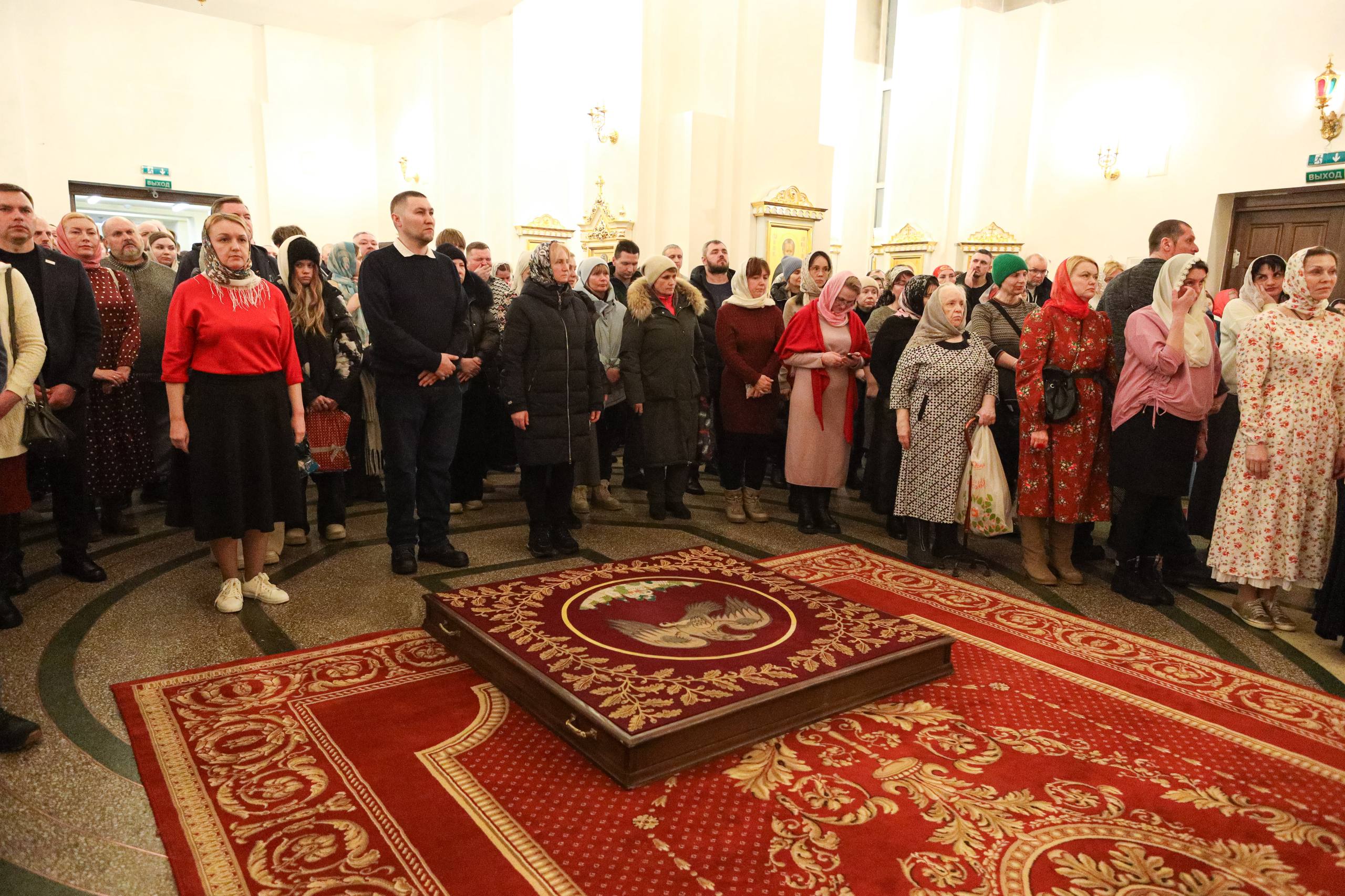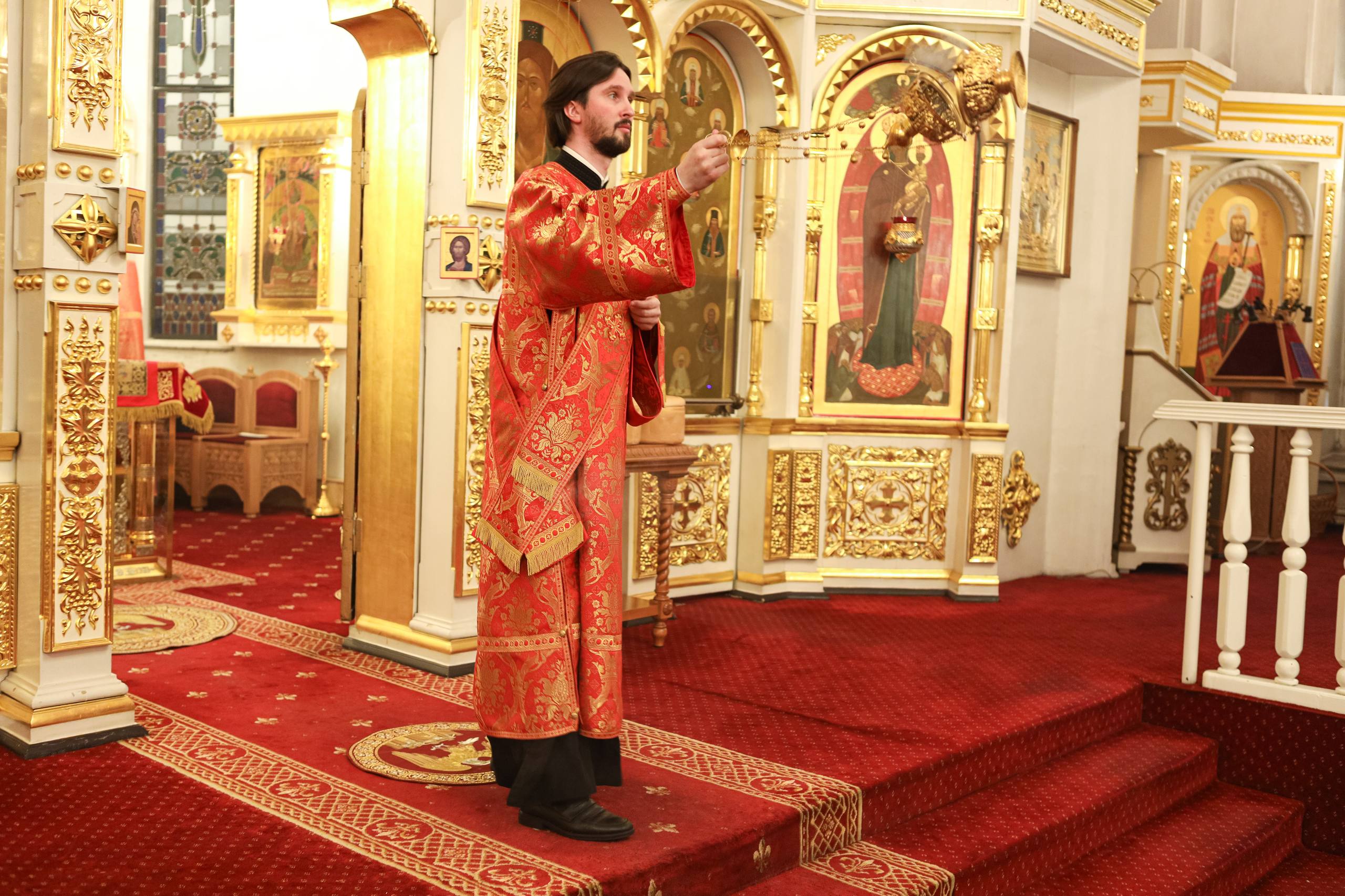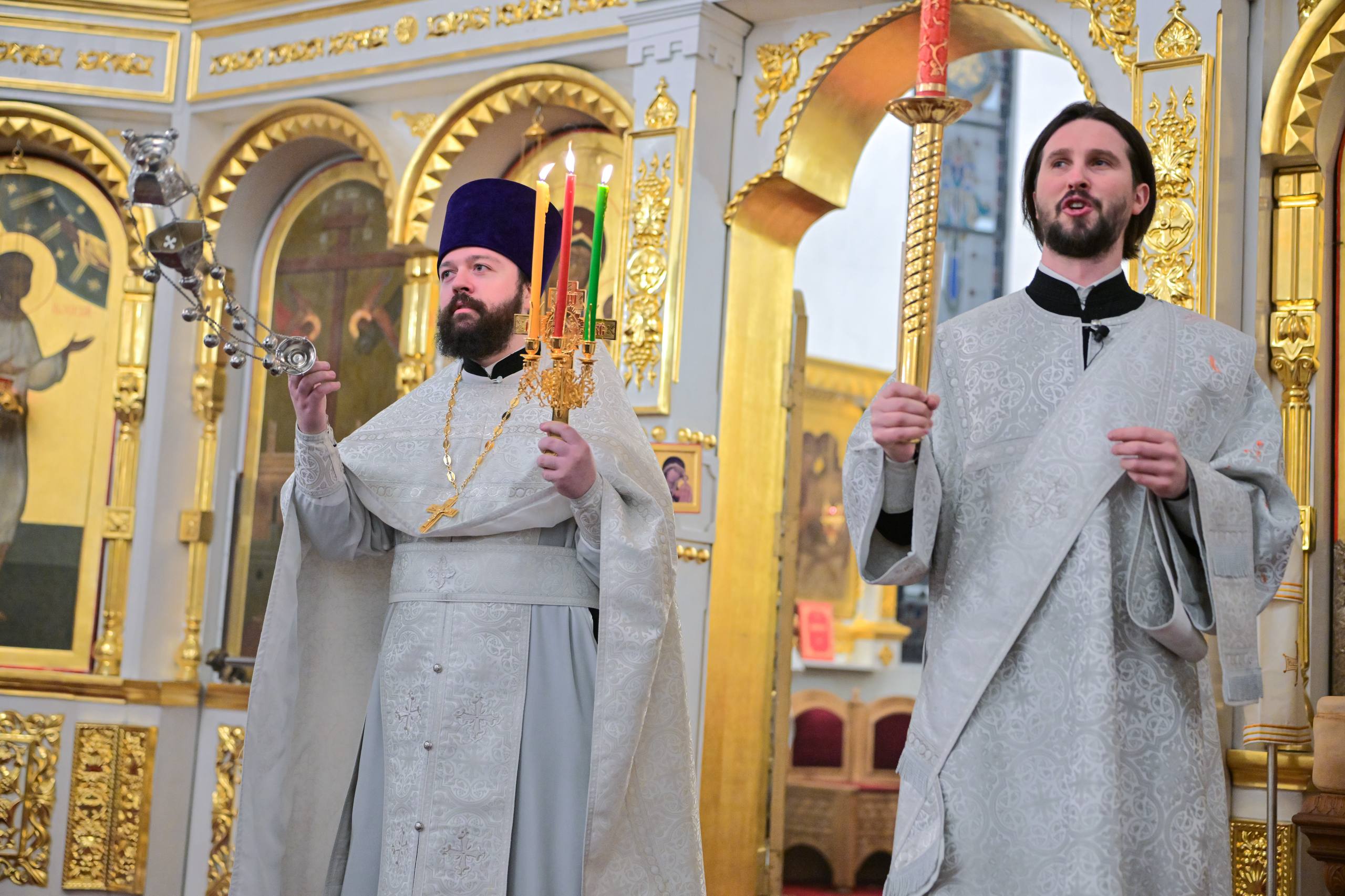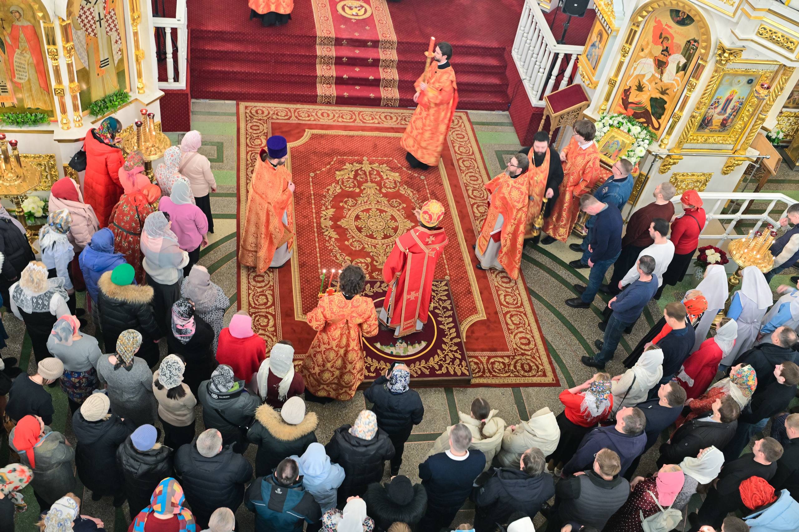 Его Преосвященству сослужили: духовник Норильской епархии протоиерей Владимир Иванов; руководитель отдела Норильской епархии по социальному служению и церковной благотворительности иерей Алексий Пирогов; благочинный кафедрального собора иконы Божией Матери «Всех скорбящих Радость» г. Норильска, руководитель отдела Норильской епархии по делам молодежи иерей Димитрий Прохоров; ключарь кафедрального собора иерей Иоанн Помазкин; духовенство собора.