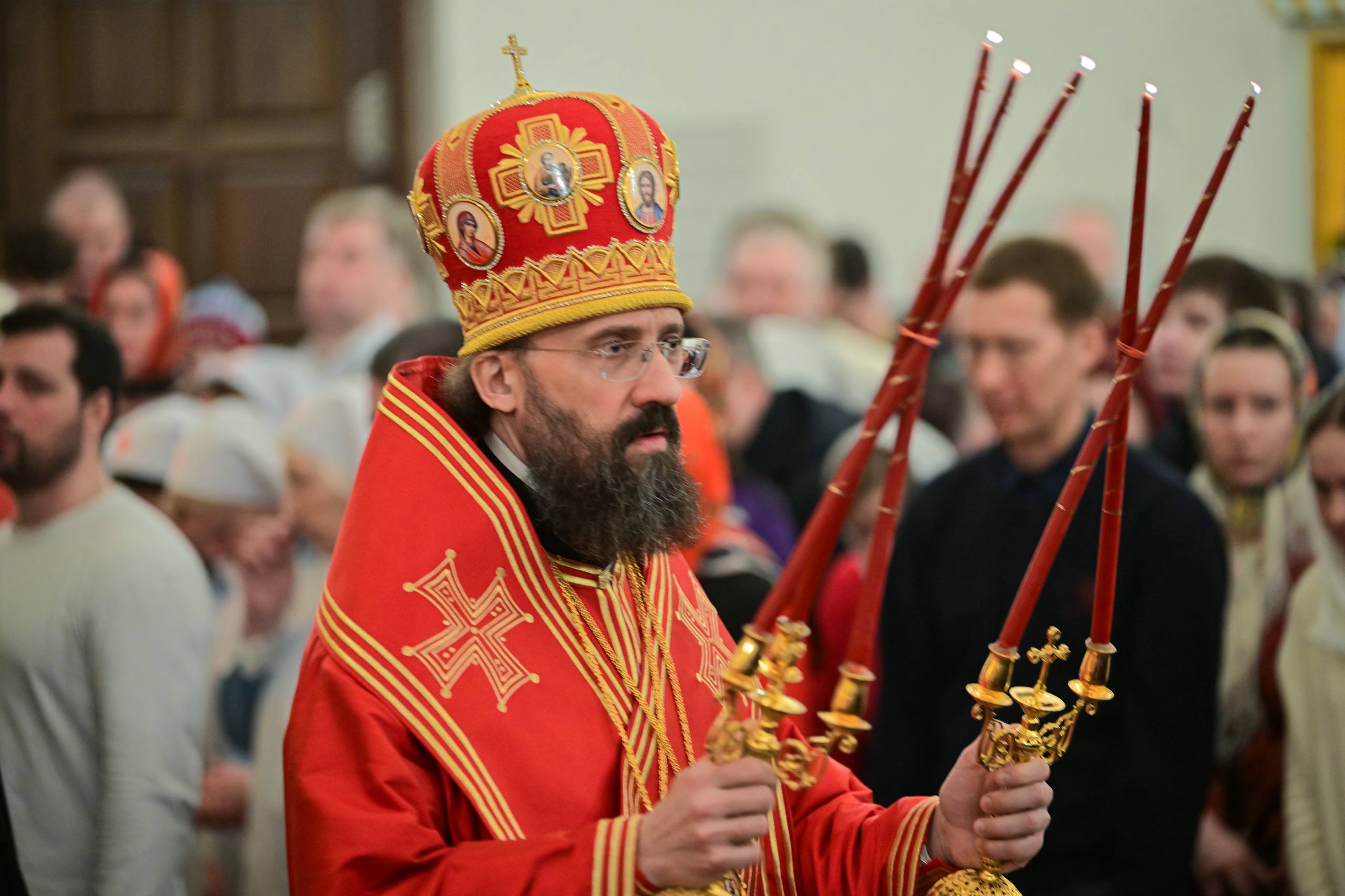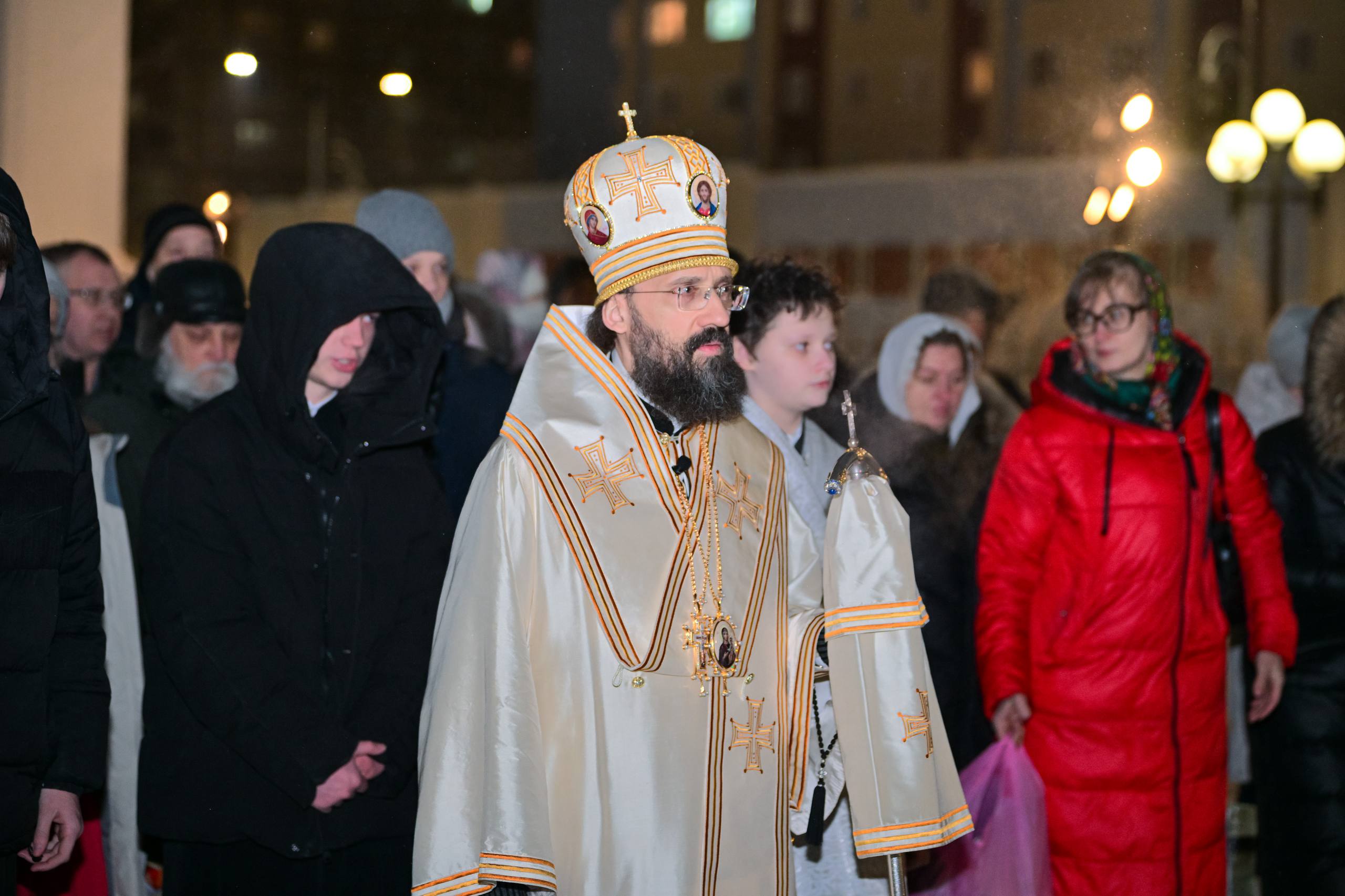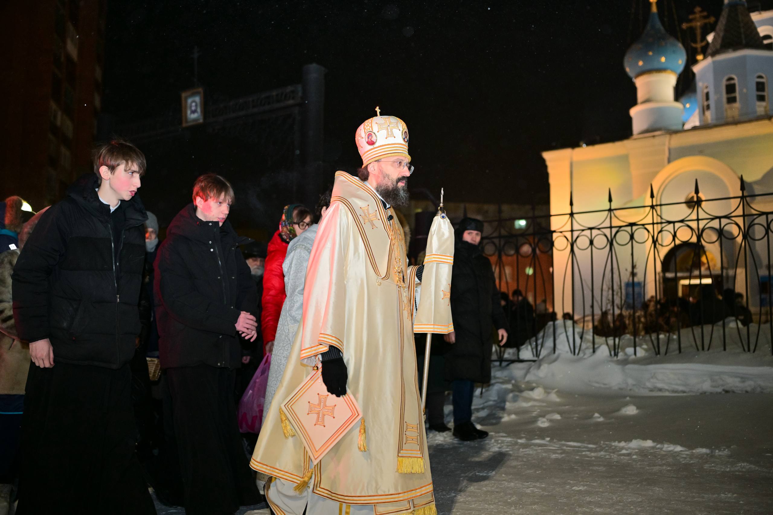 Епископ Агафангел за Пасхальной заутреней прочитал Слово огласительное святителя Иоанна Златоуста на Святую Пасху.