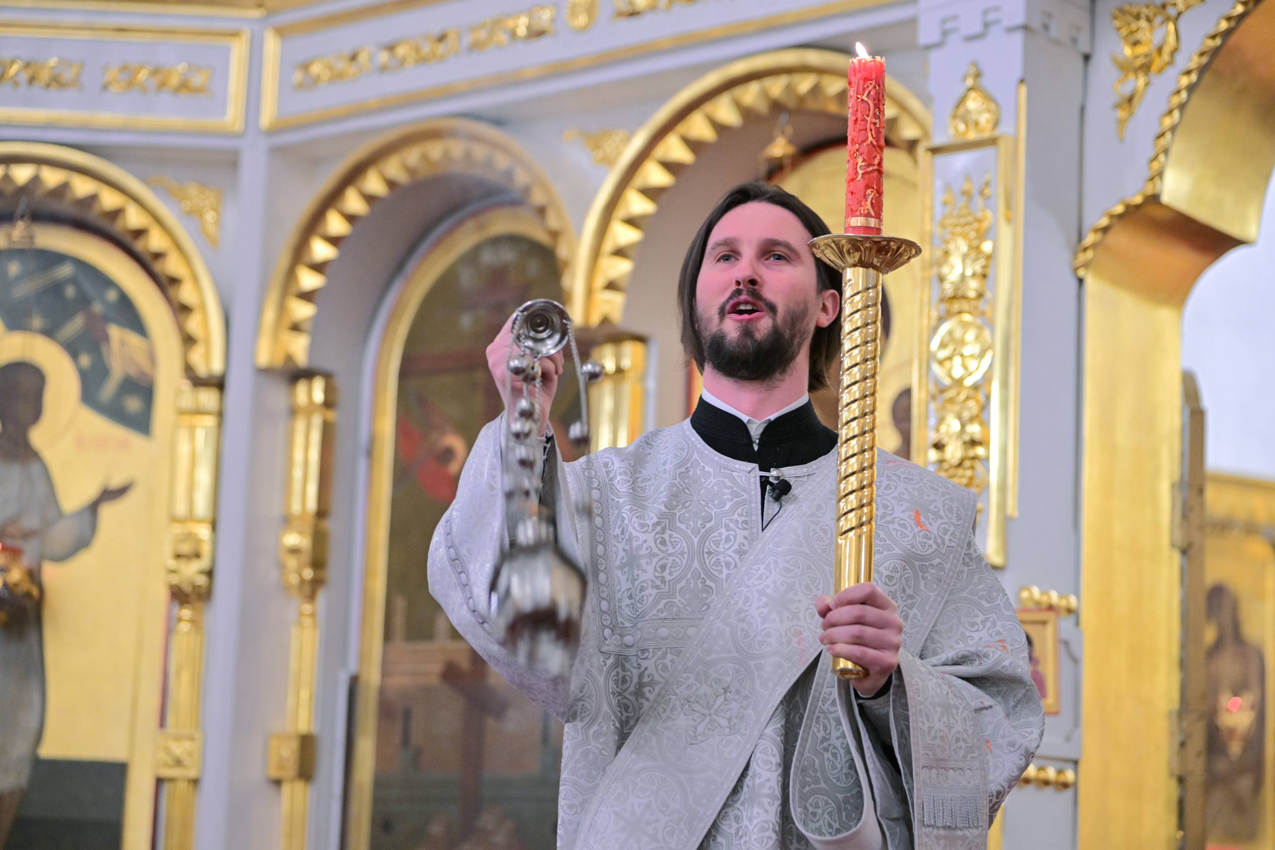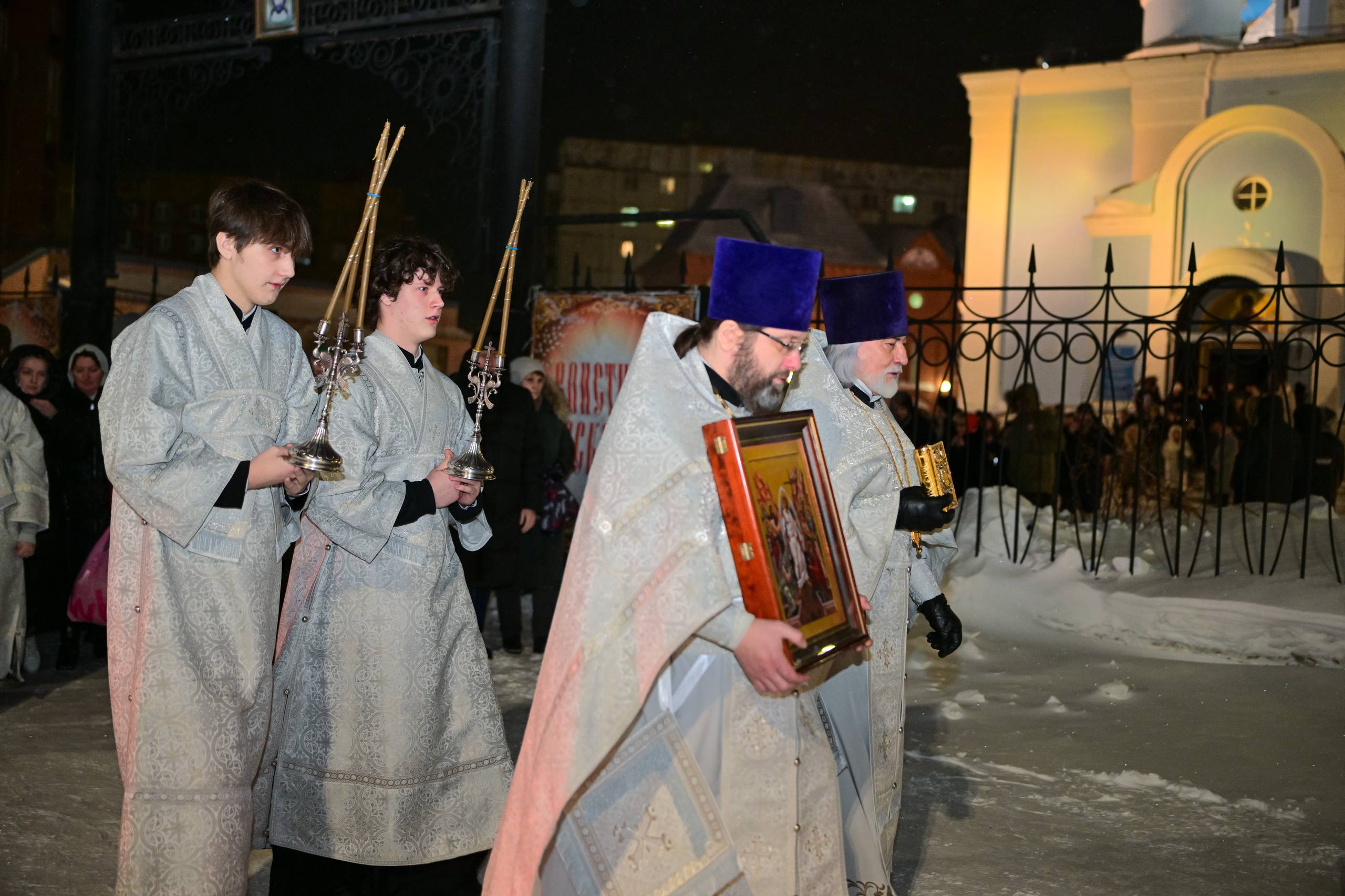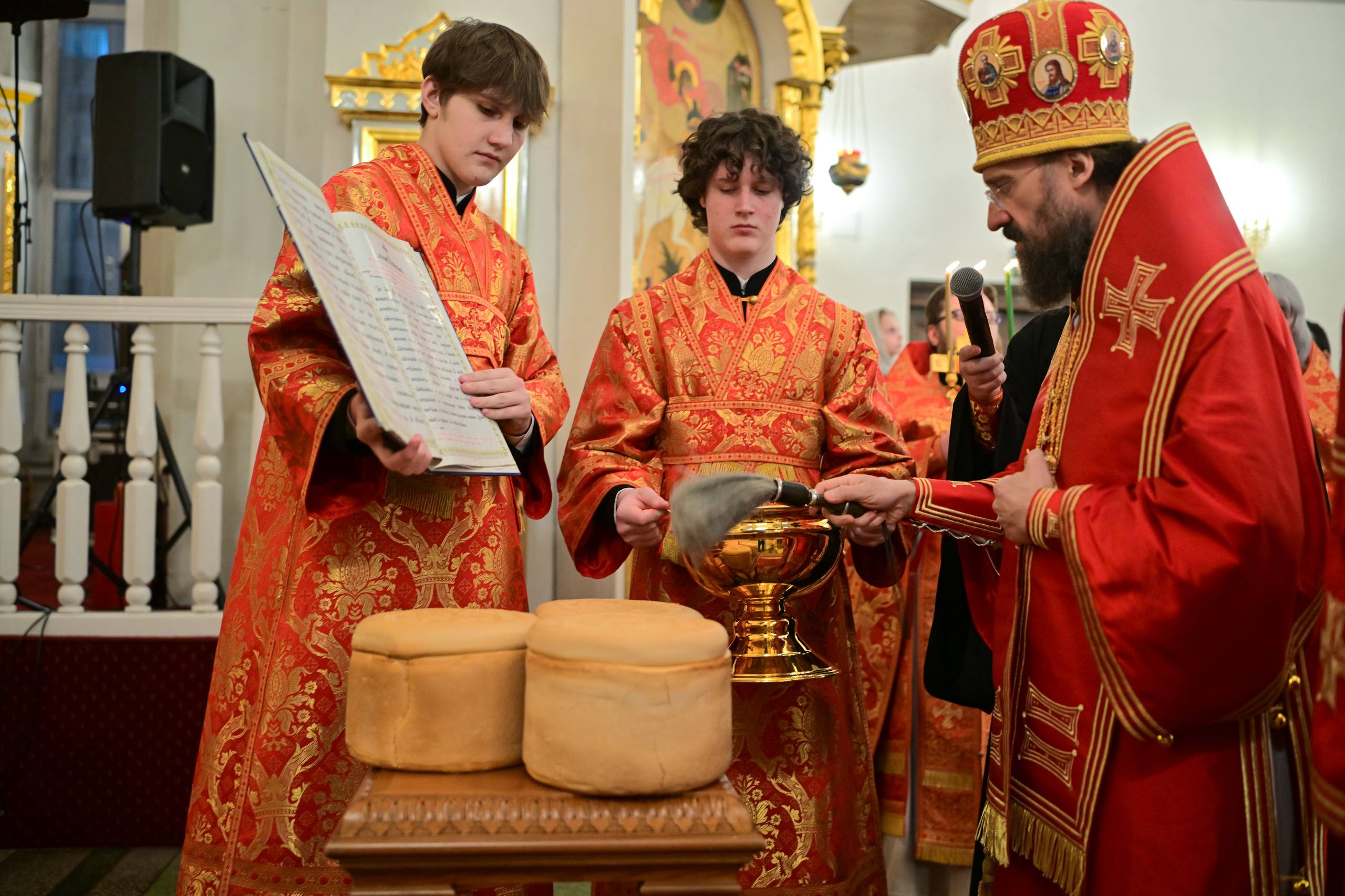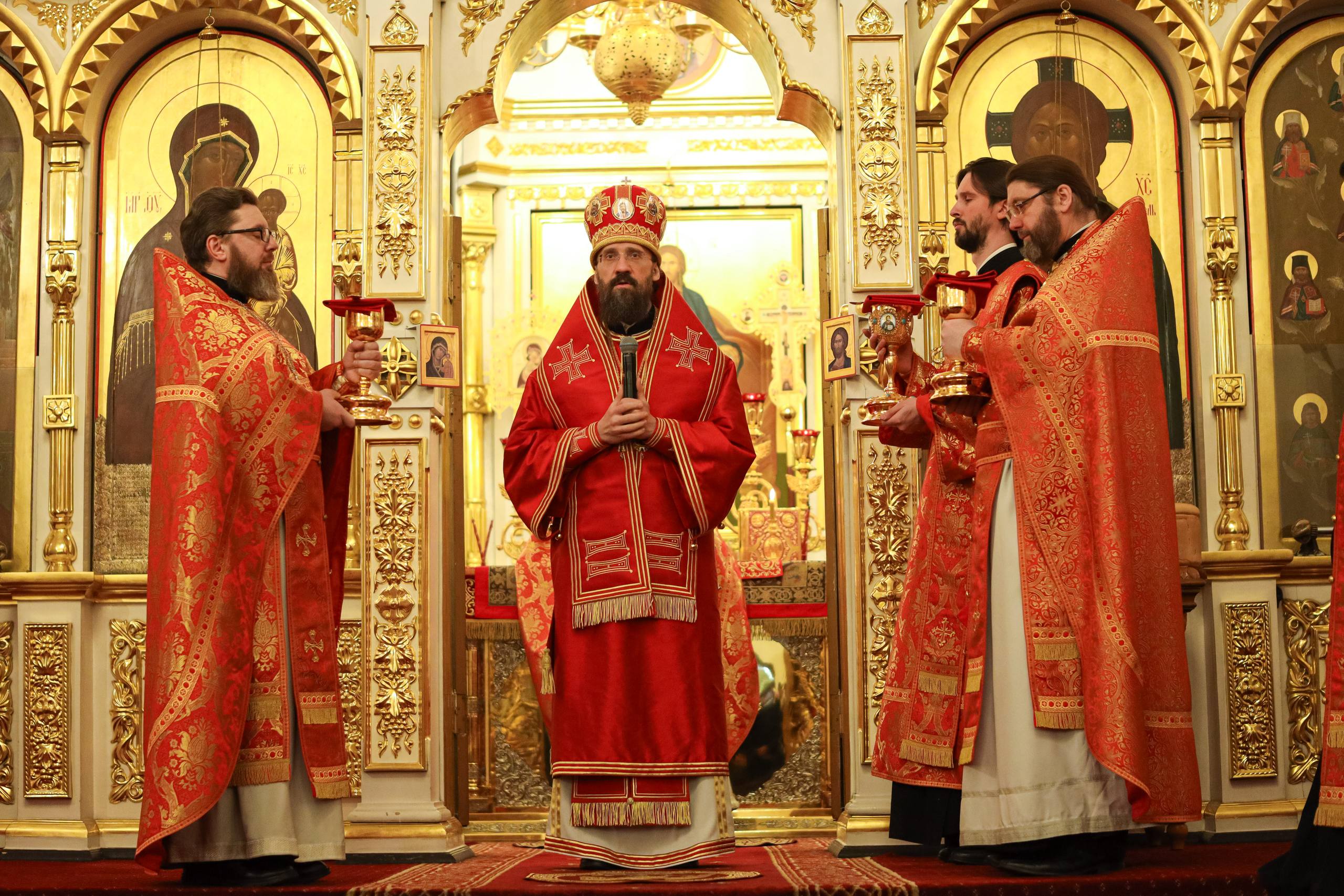 Епископ Агафангел за Пасхальной заутреней прочитал Слово огласительное святителя Иоанна Златоуста на Святую Пасху.