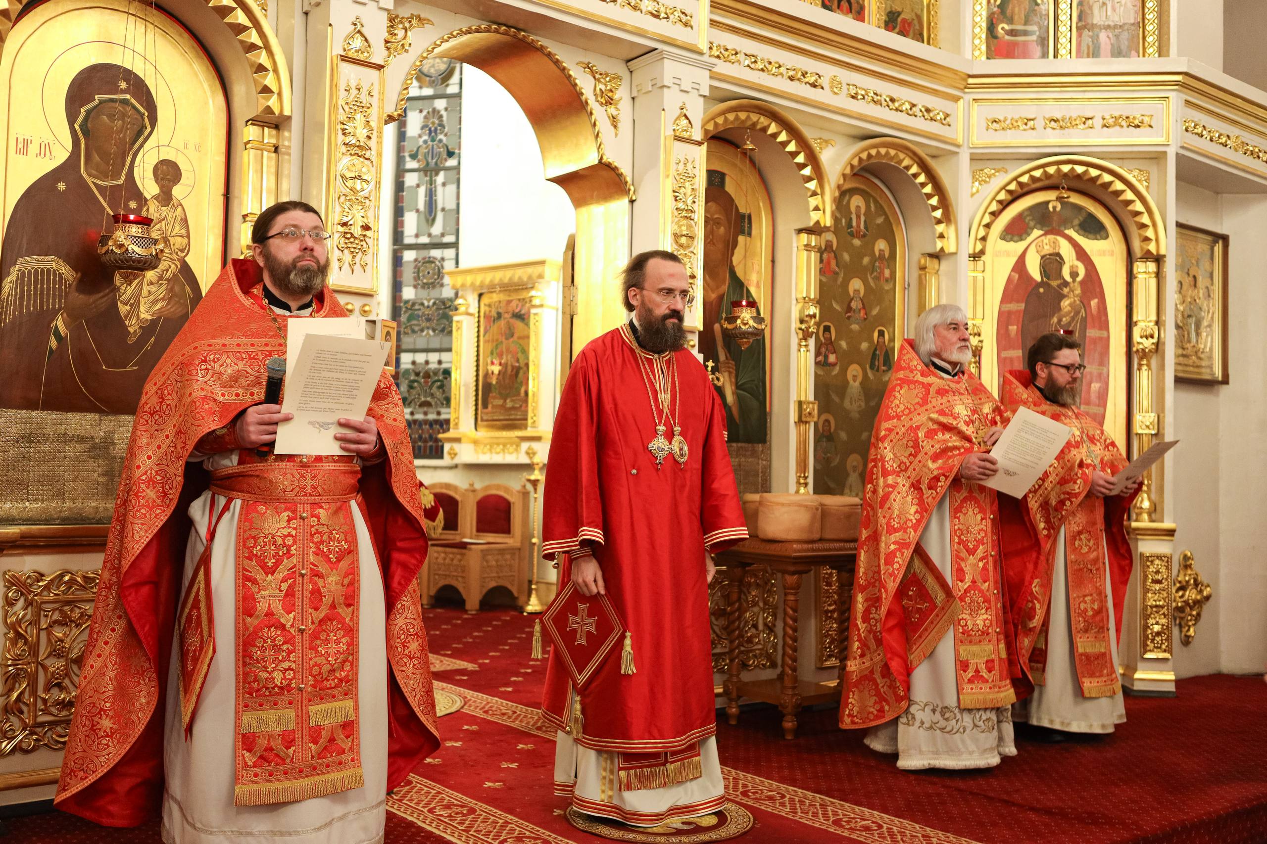 На сугубой ектении были вознесены особые прошения, Архипастырь прочитал молитву о Святой Руси.