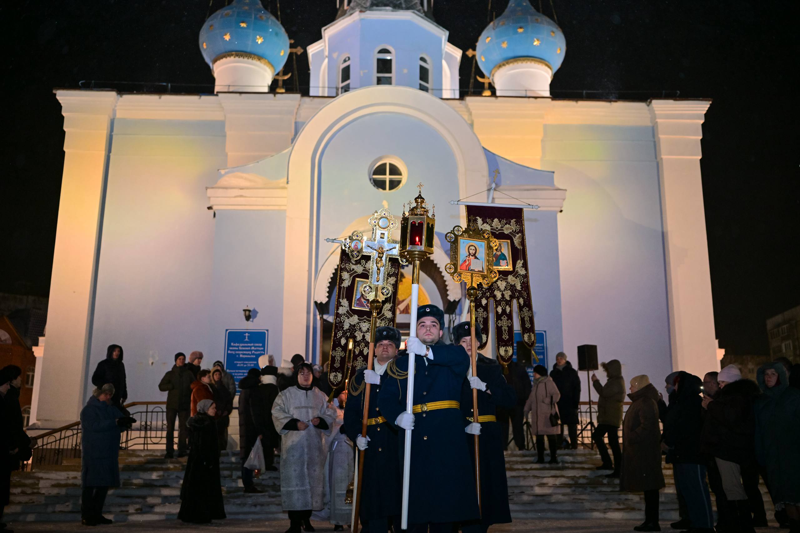 В храме присутствовали сотрудницы и добровольцы епархиального сестричества милосердия, представители казачества г. Норильска и представители Всероссийского военно-патриотического общественного движения «Юнармия».