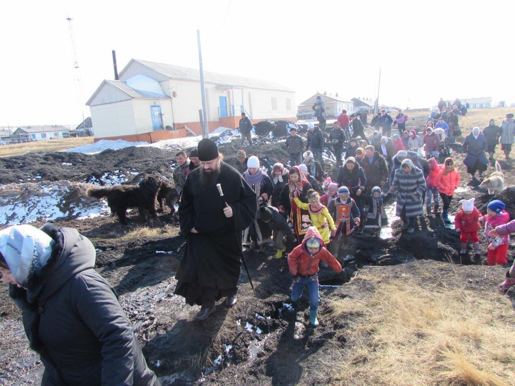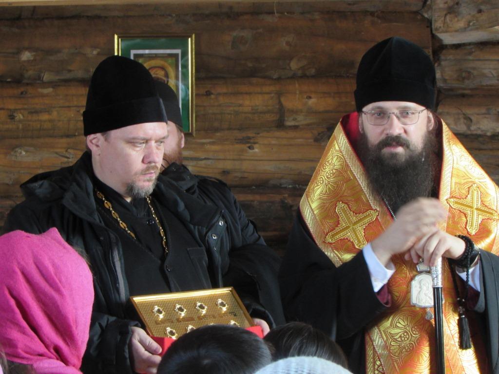 Владыка возглавил пасхальный молебен. А после все желающие благоговейно подходили к привезенным мощам преподобного Серафима Саровского и дивеевских святых, прикладывал к ним свои домашние иконы. Поскольку с Владыкой прилетели еще три опытных священника, несмотря на краткость визита, каждому желающему было уделено внимание, все смогли побеседовать с батюшкой, выяснить интересующие его вопросы. В обращении к прихожанам в храме, в беседах с активом, в обычных разговорах с жителями Владыка обращал внимание на необходимость укреплять внутреннюю жизнь прихода, проводить совместные молитвы, коллективное чтение Евангелия. Он советовал регулярно собираться вместе, обсуждать духовные вопросы, заботиться дуг о друге, помогать – создавать истинную христианскую общину, не дожидаясь того, когда в храме появиться постоянный настоятель.