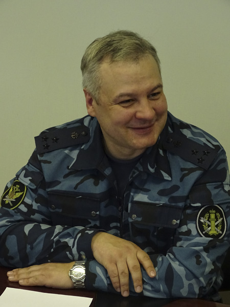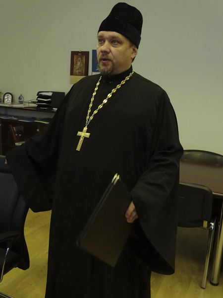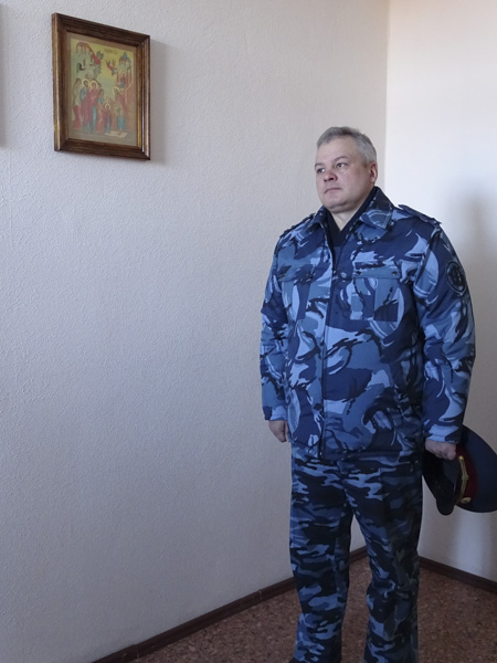 За богослужением присутствовали руководители и администрация ОИК №30. В своей проповеди Владыка отметил важность сотрудничества Русской Православной Церкви и исправительных учреждений, а также поблагодарил руководство Объединения и отца Димитрия за попечение о благоукрашении новосозданной часовни апостола Андрея.