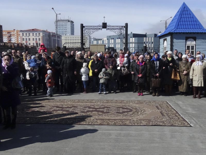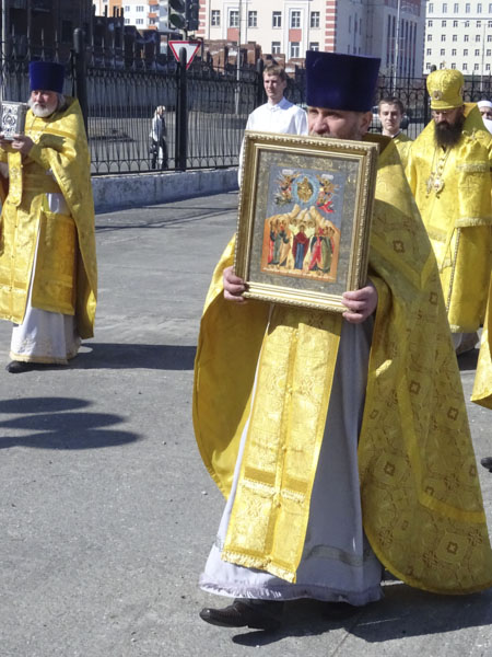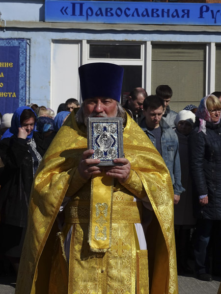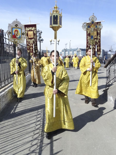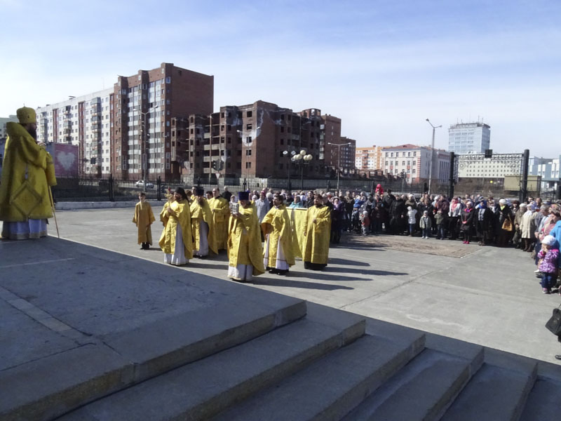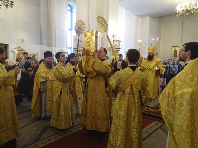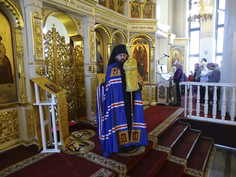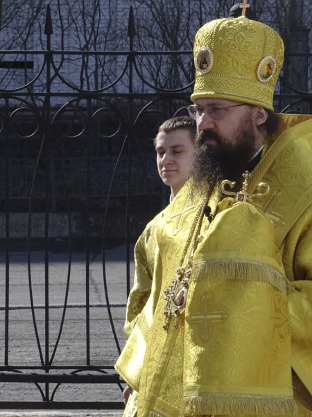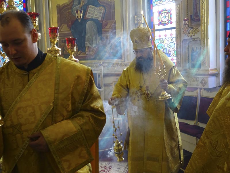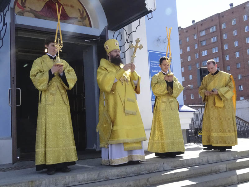 По окончании Божественной литургии епископ Агафангел, духовенство и миряне совершили крестный ход вокруг кафедрального собора, после которого Владыка возглавил молебен святым Кириллу и Мефодию на площади перед храмом. На молебне возносились сугубые молитвы о здравии Святейшего Патриарха Московского и всея Руси Кирилла.