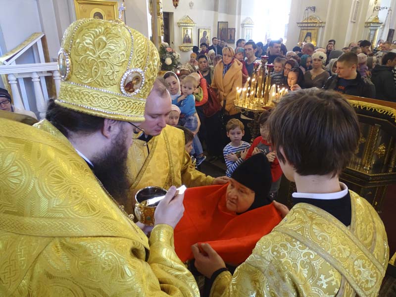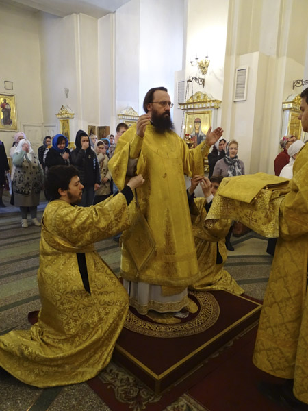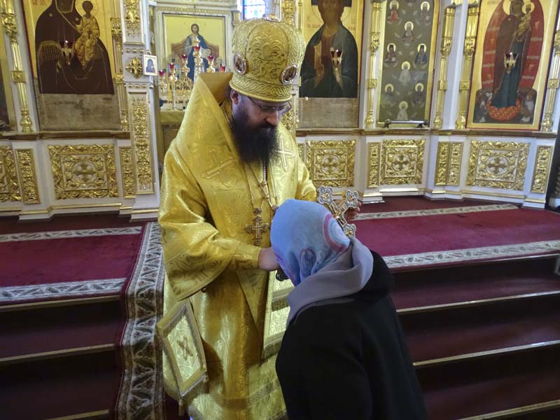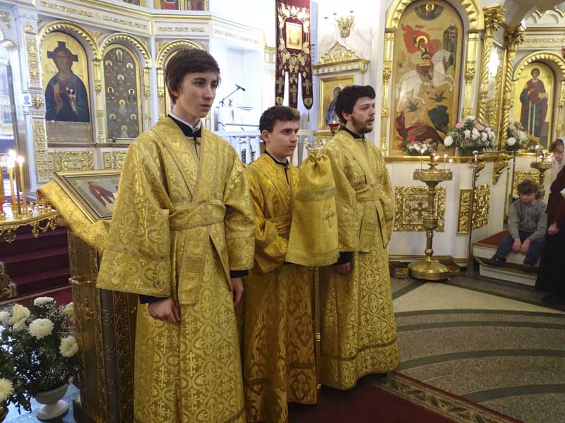 За Богослужением были вознесены особые прошения на сугубой ектении и прочитана молитва о мире на Украине.