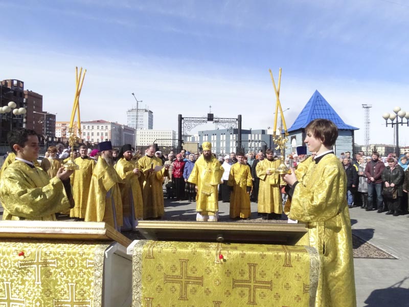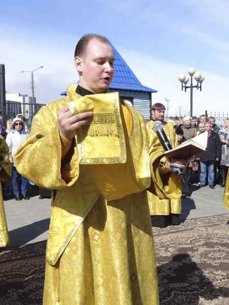 Его Преосвященству сослужили: секретарь Норильской епархии иеромонах Герман (Мельников), благочинный Норильского округа протоиерей Владимир Иванов и духовенство кафедрального собора.