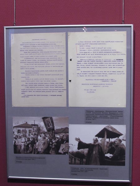 В свою очередь директор РГАСПИ А.К. Сорокин вручил митрополиту Ставропольскому и Невинномысского Кириллу планшет с копиями документов Великой Отечественной войны, в том числе сообщение о приеме Сталиным Патриаршего Местоблюстителя митрополита Сергия, митрополита Ленинградского и Новгородского Алексия, митрополита Киевского и Галицкого Николая. На этой встрече в ночь с 4 на 5 сентября 1943 года было объявлено о подготовке Поместного Собора для избрания Патриарха Московского и всея Руси и образовании при Патриархе Священного Синода.