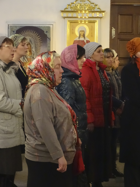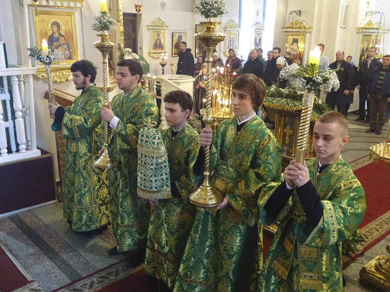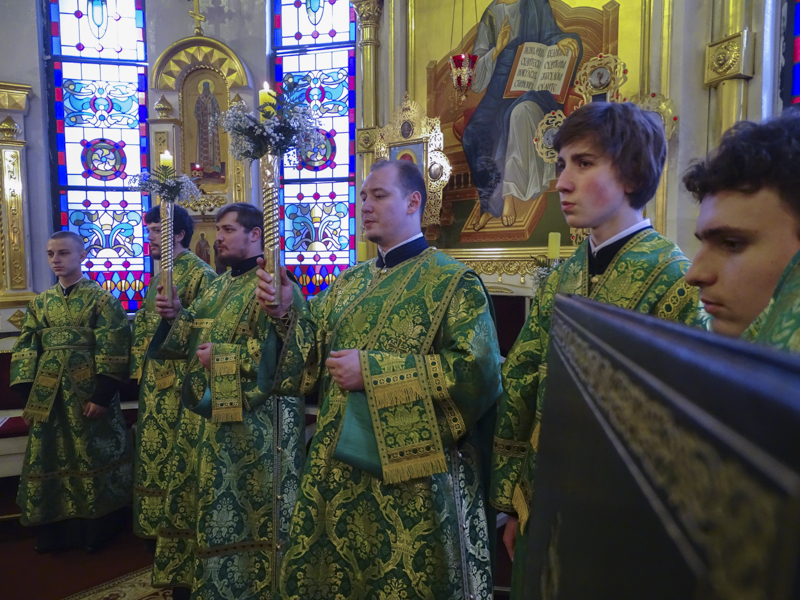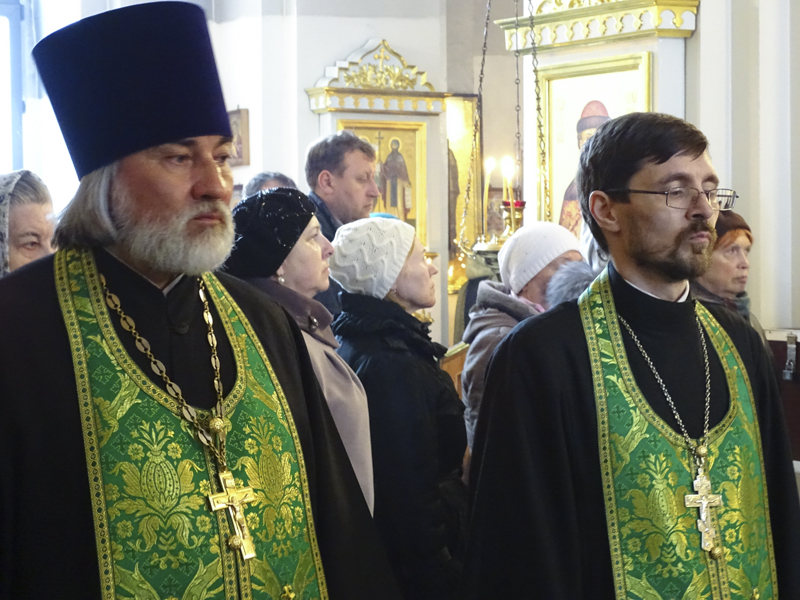 Его Преосвященству сослужили: секретарь Норильской епархии иеромонах Герман (Мельников); благочинный Норильского округа протоиерей Владимир Иванов; штатный клир собора.