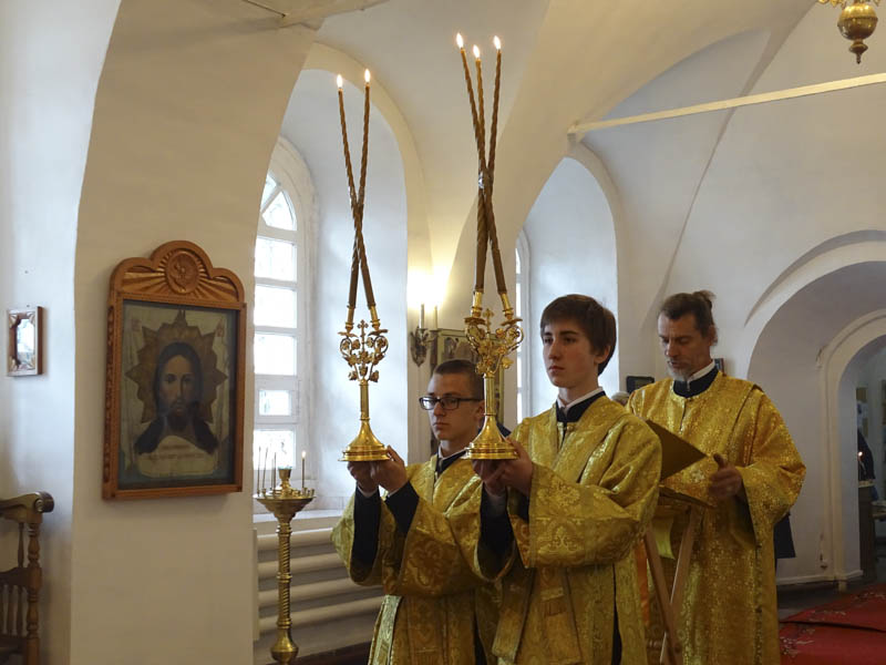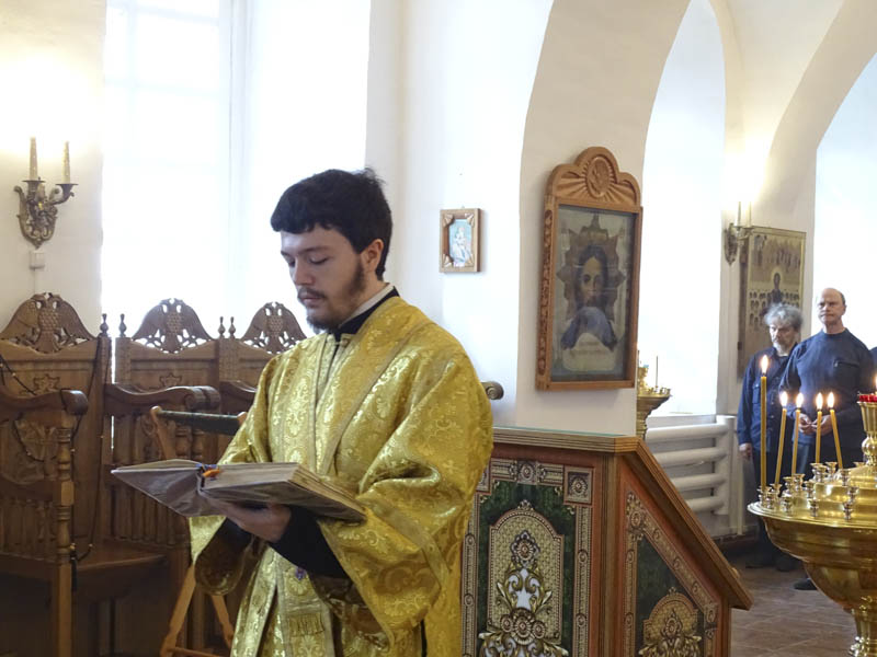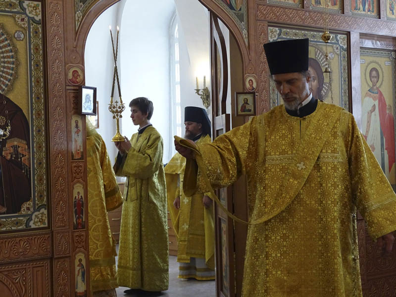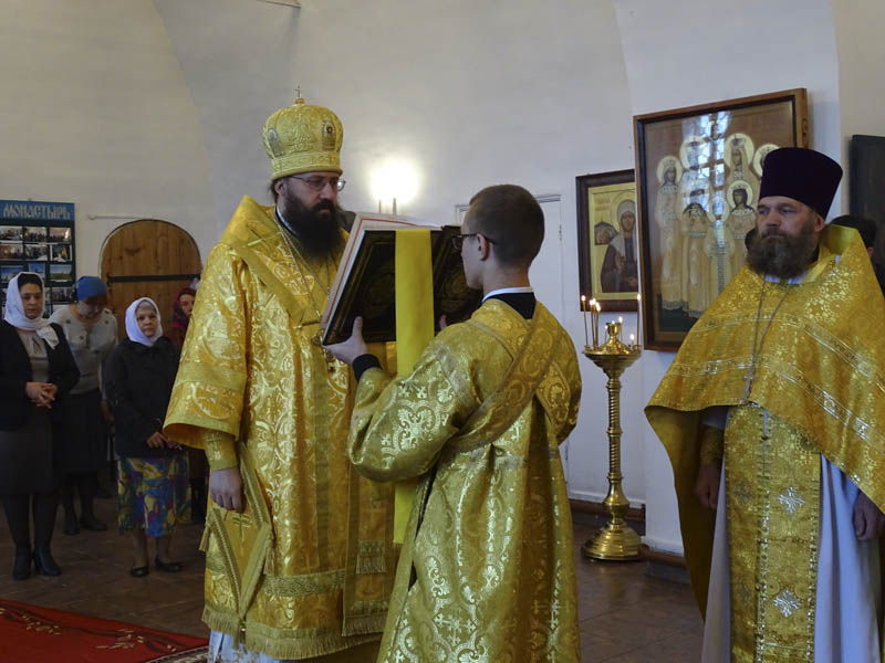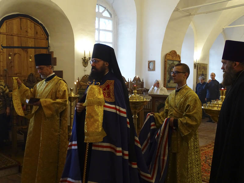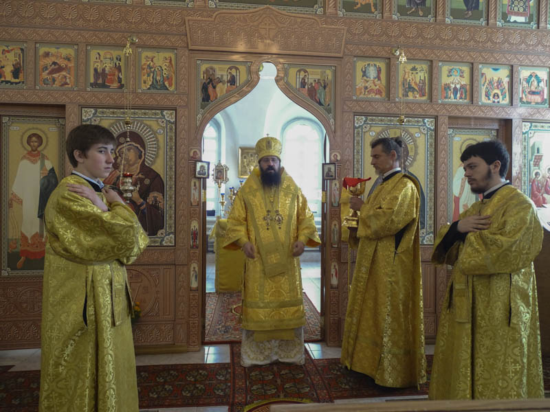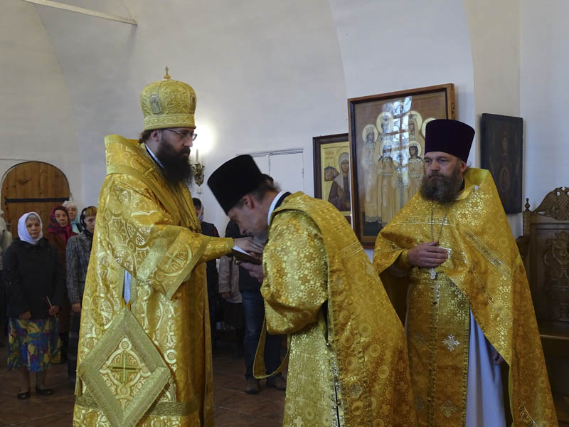Его Преосвященству сослужили настоятель монастыря игумен Софроний (Семенов) и настоятель Покровского храма поселка Светлогорск иерей Александр Попов.