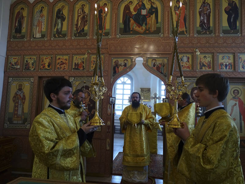 Во время богослужения в связи с предстоящим праздником – днем памяти святого мученика Василия Мангазейского в составе собора Сибирских святых – была открыта рака с мощами святого. После службы возле нее было совершено молебен.