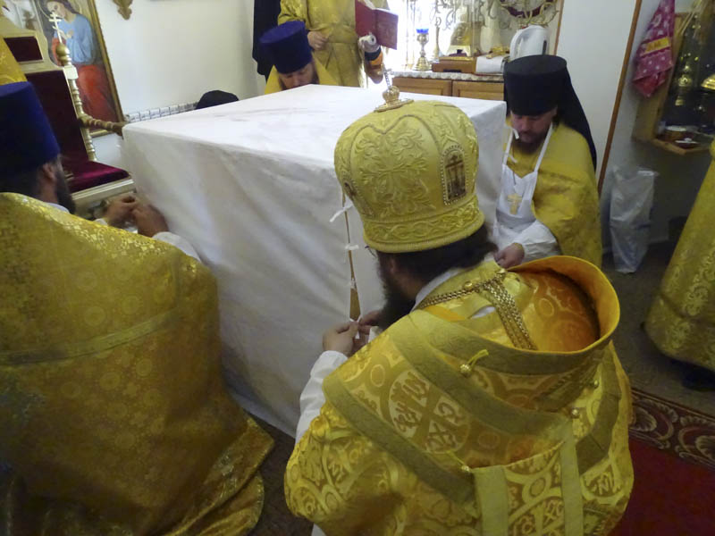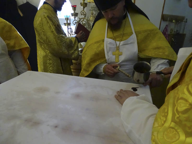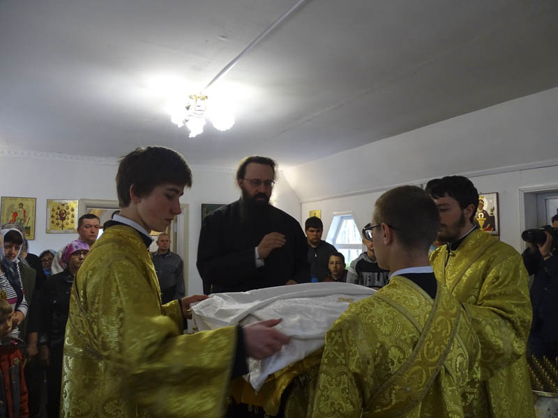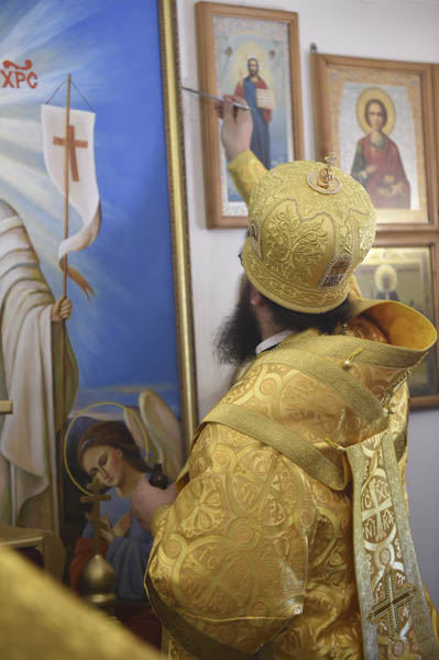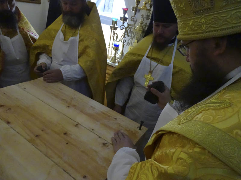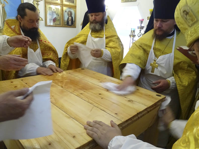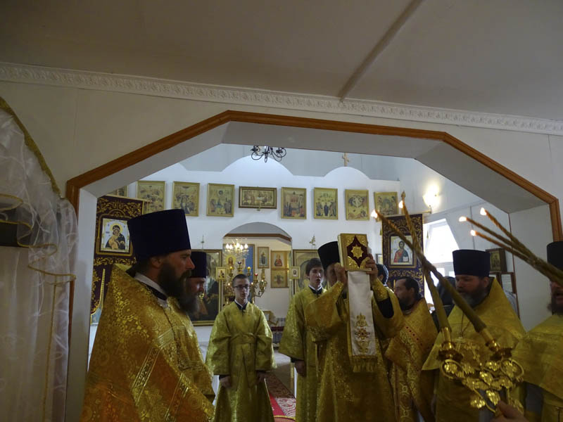 В этот знаменательный день ему сослужили благочинный Туруханского благочиния иерей Геннадий Дубинко, настоятель Свято-Троицкого Туруханского монастыря игумен Софроний, настоятель освящаемого храма иерей Александр Попов и штатный священник кафедрального собора города Норильска иерей Георгий Михайлов.