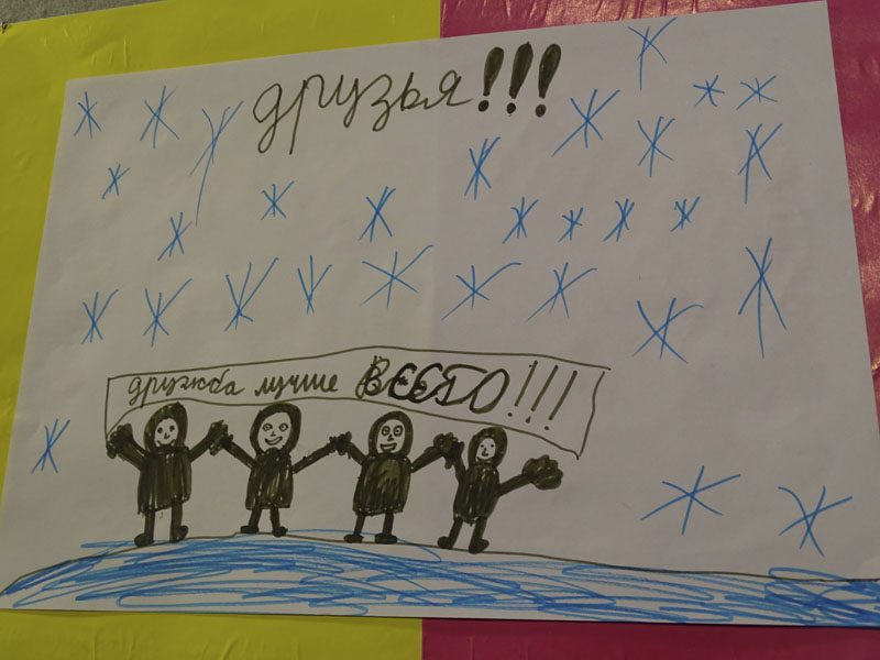 В конце встречи был подведен конкурс детского рисунка и победителям были вручены награды, особое место среди них заняли поделки школьников из Луганска. Песню, посвященную непростым событиям сегодняшнего дня в этом украинском городе, исполнил Тимофей Смолянов. Пронзительные слова песни заставили всех почувствовать, что необходимость сохранять единство славянских народов это не простые слова, а то, что сегодня нам особенно необходимо беречь и приумножать.