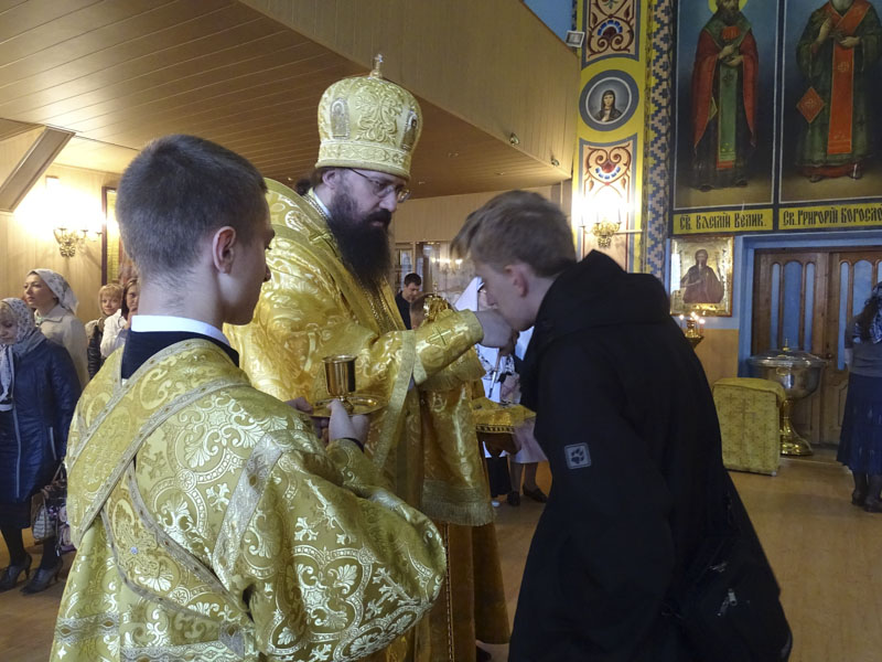 На богослужении возносились сугубые молитвы о мире на Украине. После Литургии Архипастырь обратился к собравшимся со словами проповеди.