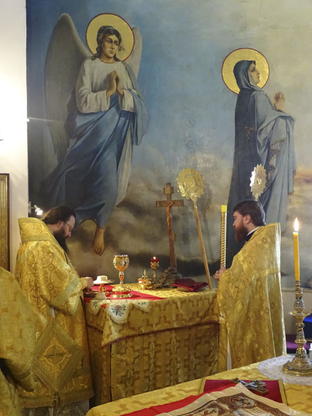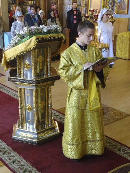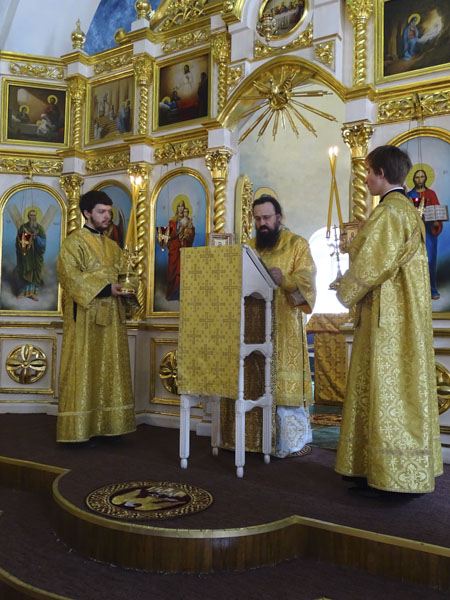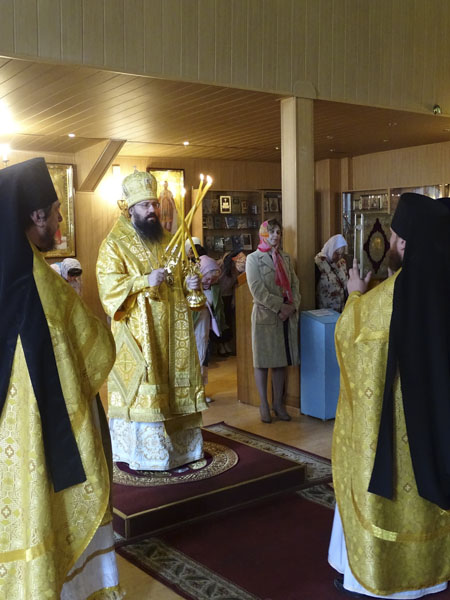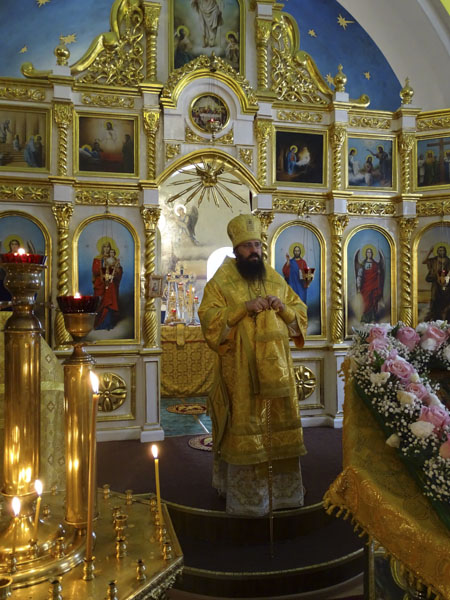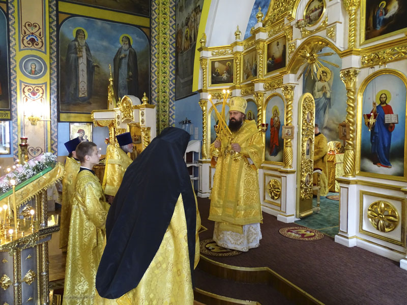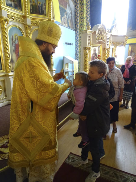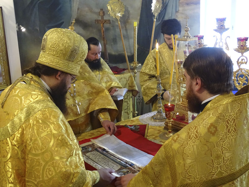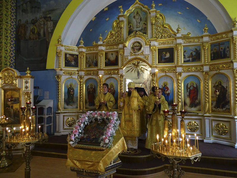 После Божественной литургии Архипастырь в сослужении духовенства совершил славление перед иконной праздника.