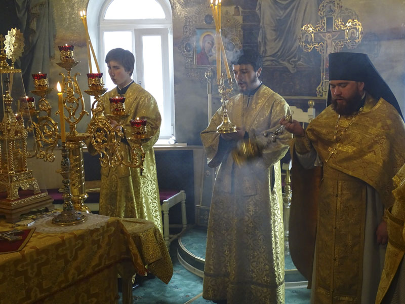 Его Преосвященству сослужили: секретарь Норильской епархии иеромонах Герман (Мельников); благочинный Норильского округа протоирей Владимир Иванов; штатный клир собора.