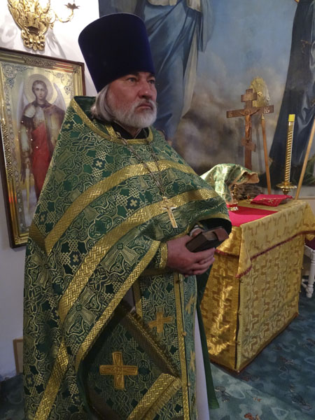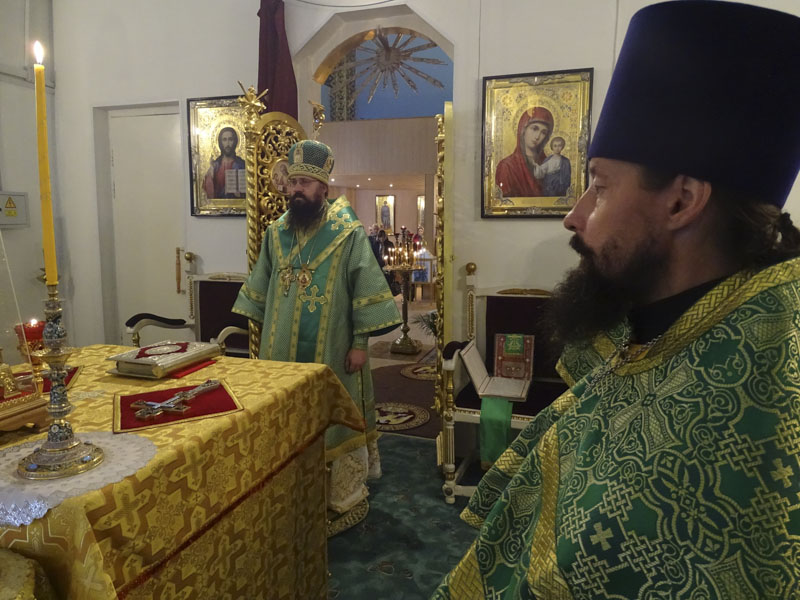 Его Преосвященству сослужили: секретарь епархии иеромонах Герман (Мельников), благочинный Норильского округа протоиерей Владимир Иванов и духовенство кафедрального собора.