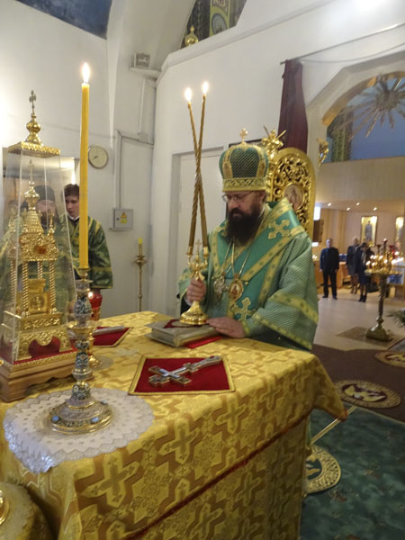 По окончании Божественной литургии Владыка Агафангел в сослужении духовенства совершил молебен святым Петру и Февронии.