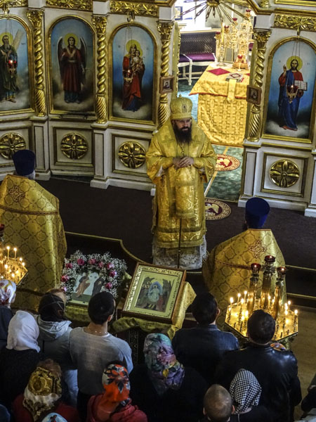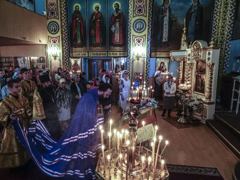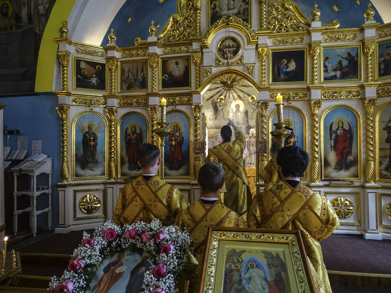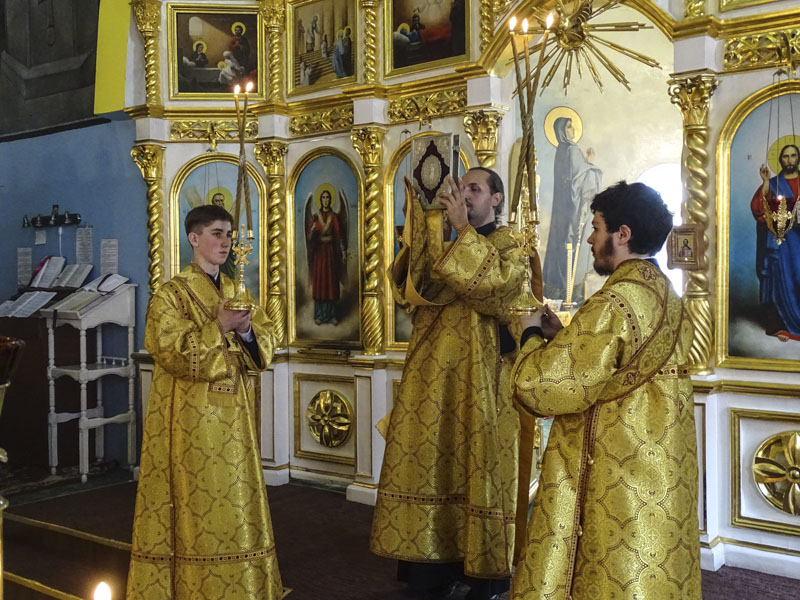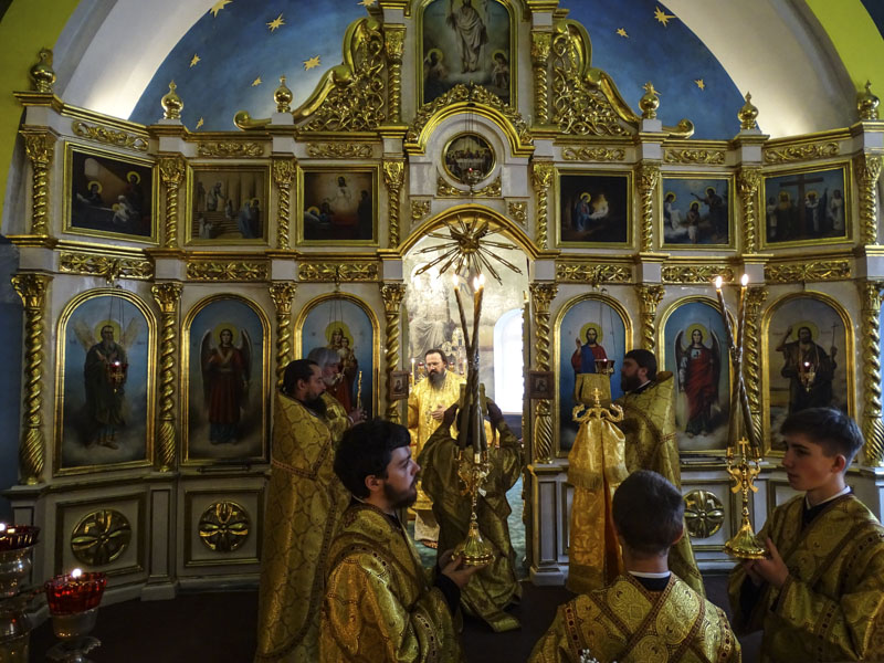 За богослужением возносились усердные молитвы о мире на Украине.