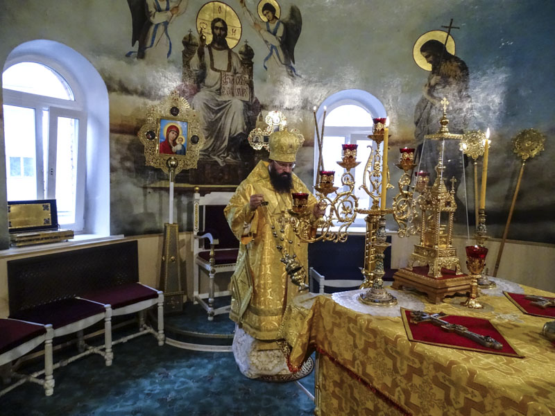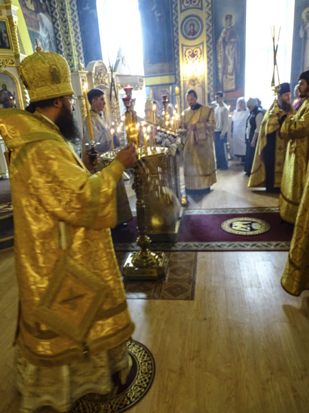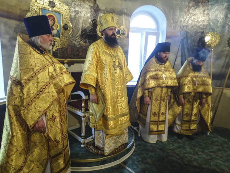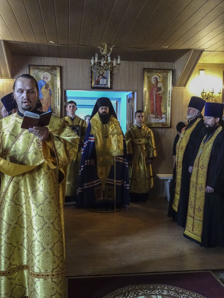 Его Преосвященству сослужили: секретарь Норильской епархии иеромонах Герман (Мельников);благочинный Норильского округа протоиерей Владимир Иванов; духовенство кафедрального собора города Норильска.