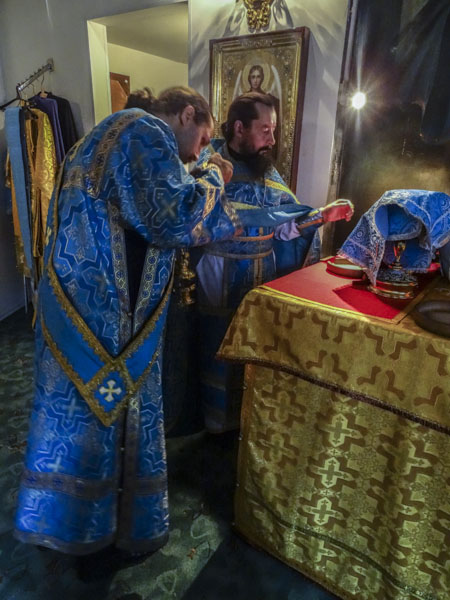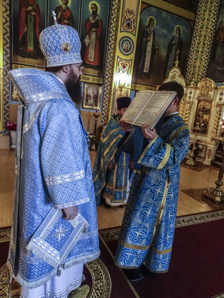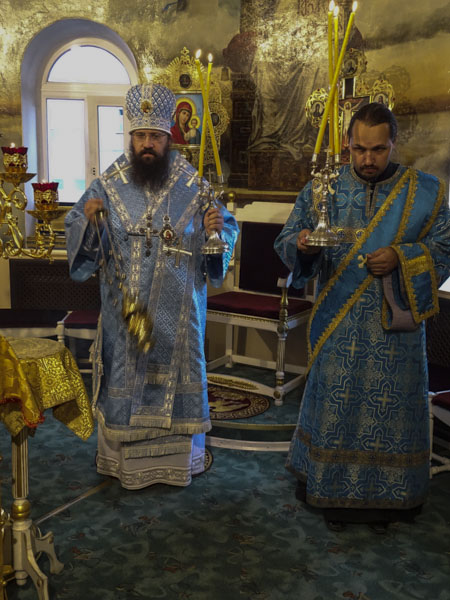 После Божественной литургии Архипастырь в сослужении духовенства совершил славление перед иконой Божией Матери.