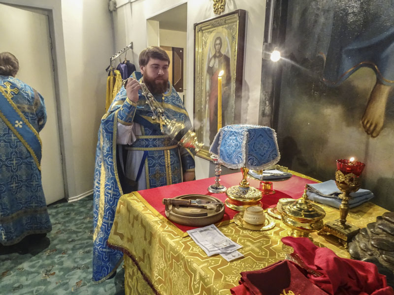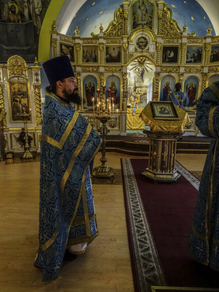 Его Преосвященству сослужили: секретарь Норильской епархии иеромонах Герман (Мельников) и штатный клир кафедрального собора города Норильска.