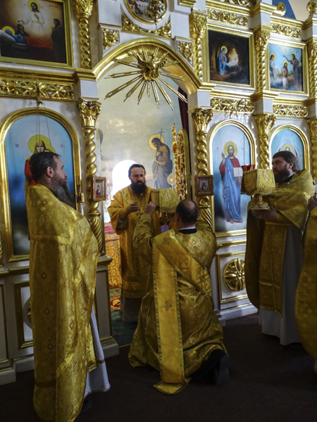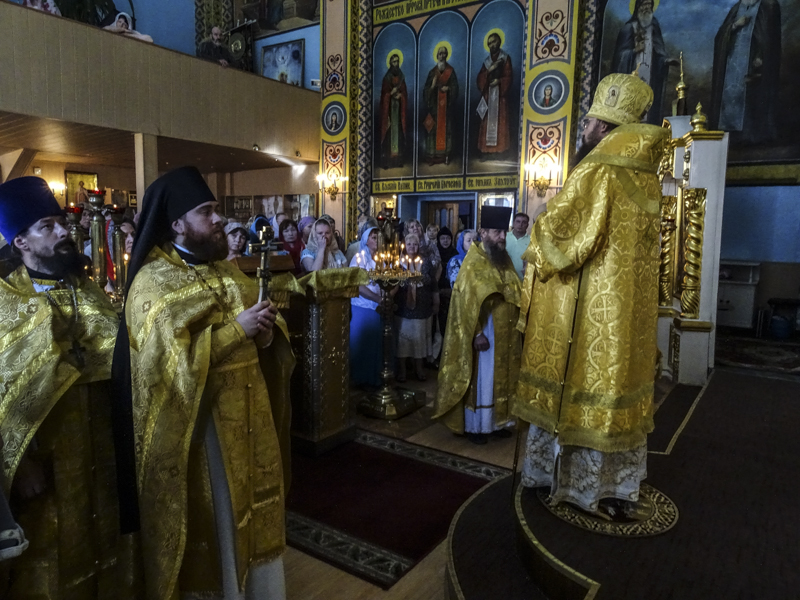 Его Преосвященству сослужили секретарь Норильской епархии иеромонах Герман (Мельников) и духовенство кафедрального собора города Норильска.