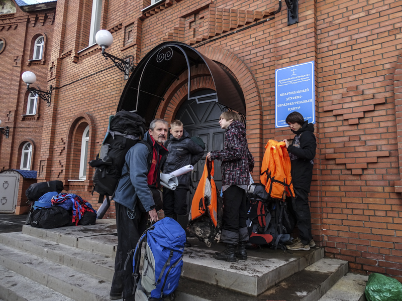 После молебна, ребята собрали свое походное снаряжение и заняли места в автобусе. Во дворе епархиального управления их провожали Владыка Агафангел, директор ДПЦ Татьяна Николаевна Пучканева и родители путешественников.