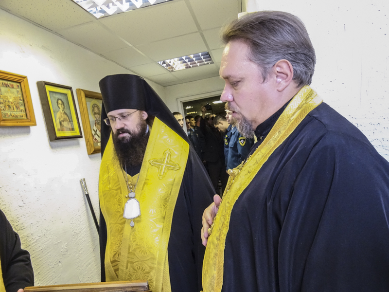 8 Сентября, Его Преосвященство Преосвященнейший Агафангел епископ Норильский и Туруханский совершил чин освящения новоустроенной часовни в 7 Отряде противопожарной службы г. Норильска. Управляещему Норильской епархии сослужили: секретарь епархии иеромонах Герман (Мельников) и руководитель епархиального отдела по взаимодействию с силовыми структурами протоиерей Димитрий Харцыз. По окончании богослужения Преосвященнейший Агафангел обратился к собравшимся со словами проповеди и поздравив всех с этим большим событием, подчеркнул важность православной веры в жизни человека, который по долгу службы рискует свей жизнью.