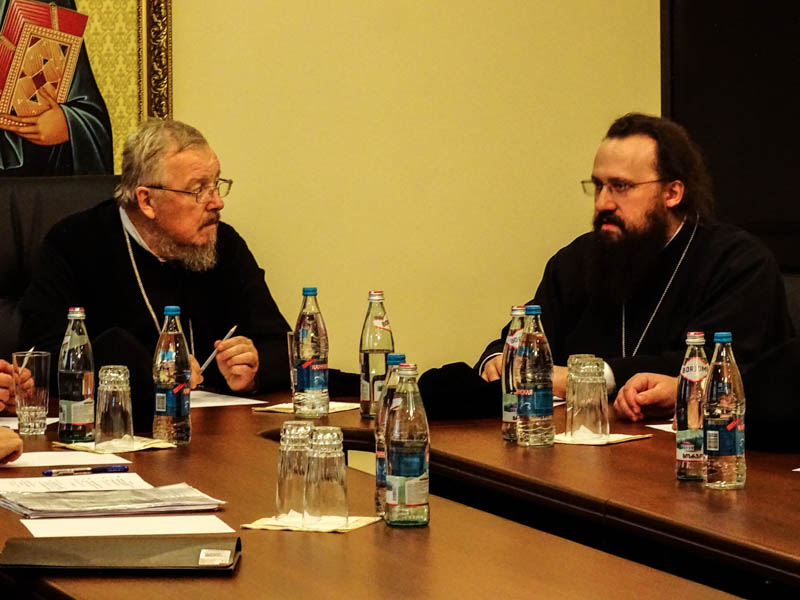 После осмотра кафедрального собора, архиереи направились в епархиальное управление города Норильска, где состоялось совещание по вопросам предстоящего визита Святейшего Патриарха Московского и Всея Руси Кирилла. Епископ Агафангел вручил прибывшим гостям скромые подарки.