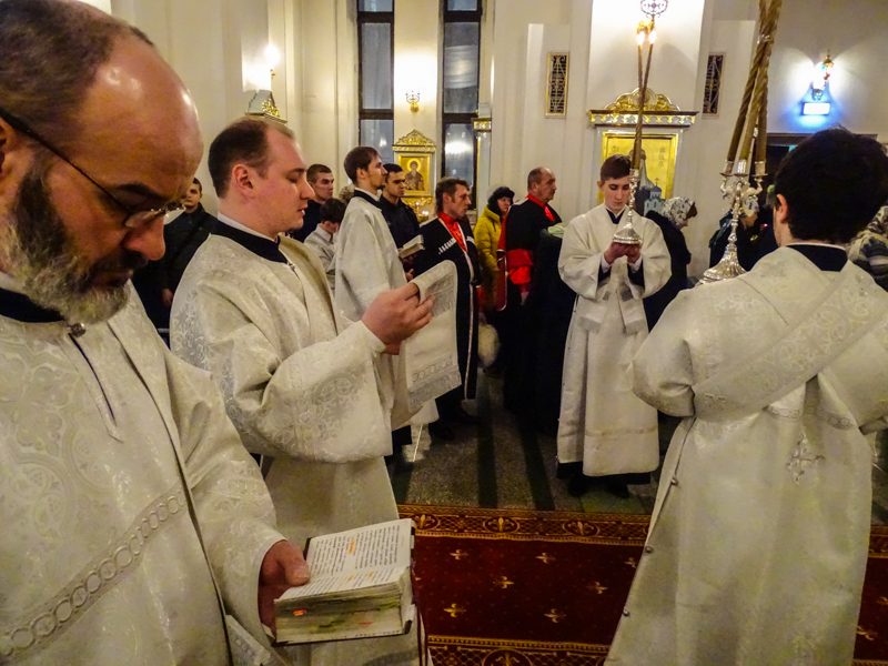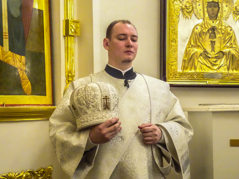 На Литургии, после сугубой ектении, Архипастырь вознес молитву о мире на Украине.