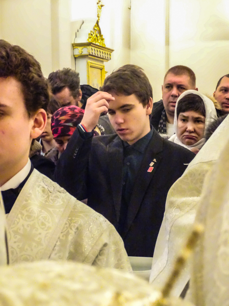 За богослужением молились представители Норильского казачества, сестры милосердия и члены молодежного движения города Норильска «Молодая Гвардия».