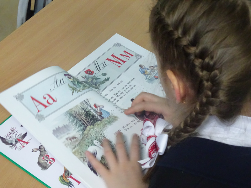 15 февраля 2015 года в гимназии №5 в рамках мероприятий, посвященных Празднику первой книги, состоялся урок для первоклассников. Руководитель ОРО и К Пучканева Татьяна Николаевна рассказала детям об азбуке святых Кирилла и Мефодия, смысле буквиц, первой книге дьякона Ивана Федорова «Апостол». Дети с интересом рассматривали современную книгу «Апостол», написанную на церковно-славянском языке.